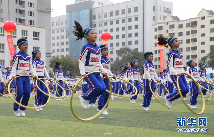 11月4日,蘭州市鹽場(chǎng)堡小學(xué)學(xué)生在活動(dòng)現(xiàn)場(chǎng)展示呼啦圈操。新華社記者 張智敏 攝