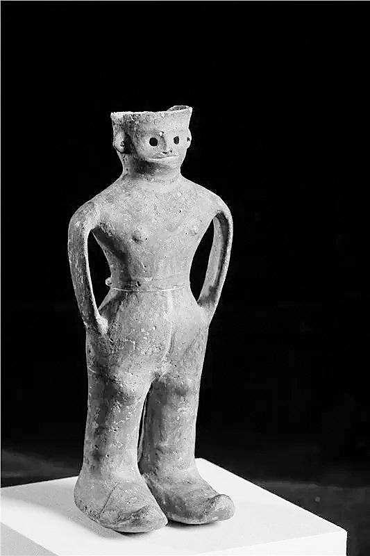 到了1989年,清泉中學(xué)的師生們?cè)趯W(xué)校附近植樹,無意間又挖出了一件陶器,這是一件人形彩陶罐。