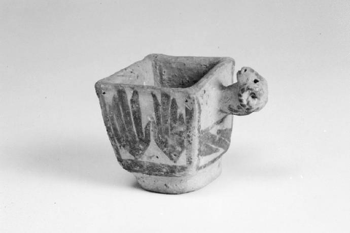 火燒溝羊頭彩陶方杯
