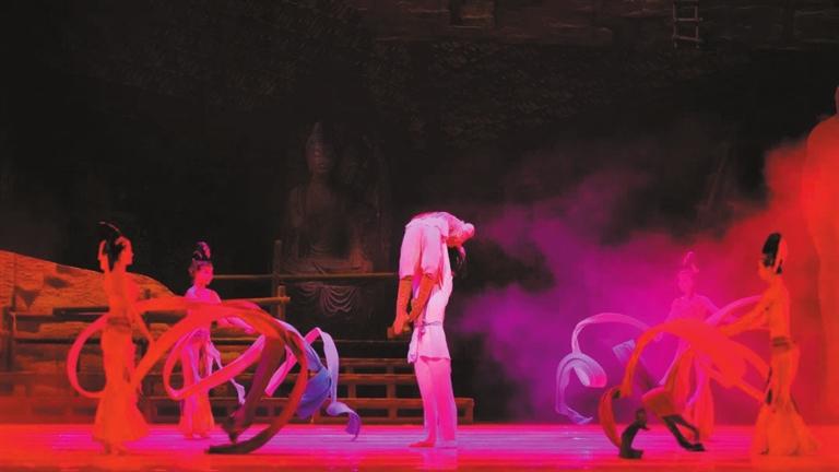 據(jù)了解,由蘭州歌舞劇院創(chuàng)作演出的大型舞劇《大夢敦煌》自2000年首演至今經(jīng)久不衰,是一部富于傳奇色彩的四幕舞劇,以敦煌藝術(shù)寶庫的千百年創(chuàng)造歷史為背景,以青年畫師莫高與大將軍之女月牙的愛情歷程為線索,演繹出一個凄婉動人的愛情故事。舞劇展現(xiàn)了絢麗多彩的敦煌文化。本次為期三天的大型舞劇《大夢敦煌》亮相的主演莫高和月牙以及乳娘的扮演者都是蘭州歌舞劇院自己培養(yǎng)的優(yōu)秀人才。