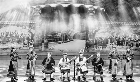 除了家族傳承還有師徒傳承。展演中,72歲的瑪曲龍頭琴國家級(jí)非遺傳承人華爾貢和徒弟們一起登臺(tái)演出,他們明快地彈唱,仿佛把觀眾帶到遼闊的草原上。