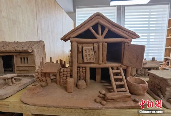 圖為學生用泥巴制作的房屋。 劉玉桃 攝