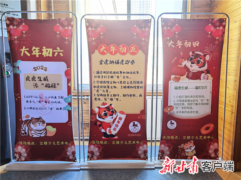 “后續(xù),還有大年初三的‘靈虎送福——虎紙漿畫DIY ’活動(dòng)、大年初四的‘?;⑸?mdash;—福燈DIY ’活動(dòng)、大年初五的‘金虎納?;⒂?rsquo;活動(dòng)、大年初六的‘虎虎生威添‘福祿’活動(dòng)’。”省博物館社會(huì)教育部主任盧冬介紹,每場活動(dòng)面向約30名小朋友開展,經(jīng)過前期策劃準(zhǔn)備,除了省博物館社教部的10余名工作人員,給孩子們普及有關(guān)虎和北京冬奧會(huì)的知識(shí),還有來自西北師范大學(xué)、蘭州二十七中等校的學(xué)生志愿者,指導(dǎo)輔助孩子們玩游戲、做手工。