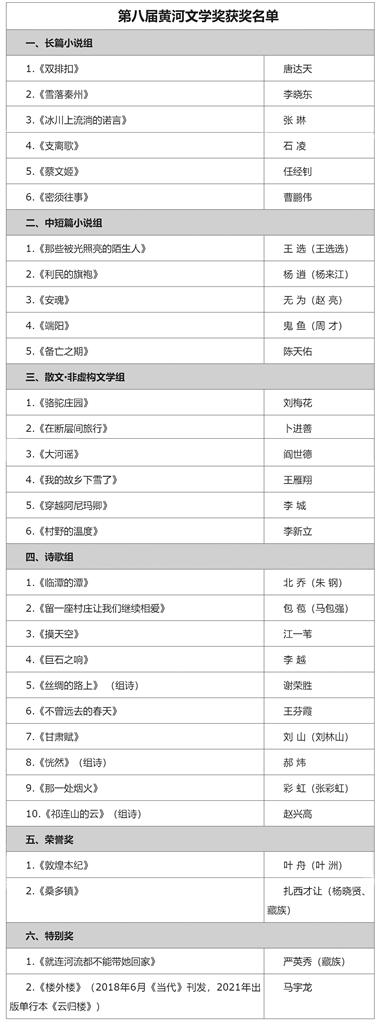 第八屆黃河文學(xué)獎獲獎名單公示