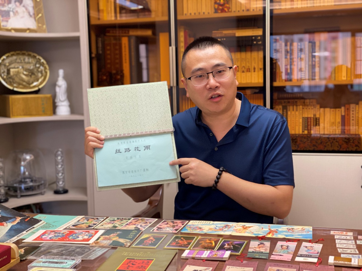 在陳曉斌的工作室,有舞劇初創(chuàng)劇本、編導手稿、舞美設計原稿和初始錄音,意大利演出宣傳冊、日本公演手冊、泰國演出節(jié)目單、西安電影制片廠電影臺本、年歷卡、年畫、小人書、明信片、火柴盒等藏品,這些都被他視若珍寶。