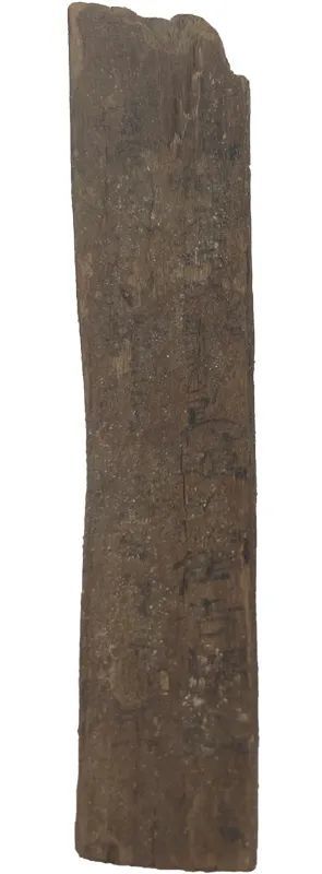 木簡(jiǎn)1枚(出土編號(hào):Ⅱ90DXT0213③:135),1990年出土于敦煌懸泉置遺址。長(zhǎng)7.2、寬1.3、厚0.25厘米。木簡(jiǎn)上殘,兩行書(shū)寫(xiě),字跡模糊,難以辨識(shí)。簡(jiǎn)文作“二人。使都護(hù)西域騎都尉、安遠(yuǎn)侯吉謂敦煌……駕,當(dāng)舍傳舍,如律令。三月甲寅過(guò),東。”。簡(jiǎn)中“使都護(hù)西域騎都尉”是西域都護(hù)的正式官名,“騎都尉”當(dāng)指以本官都護(hù)西域,是其本職,而“使”則突出了使職性質(zhì)。這是懸泉置記錄的一份傳文書(shū),簡(jiǎn)文不完整,大意是說(shuō)某年三月甲寅日,西域都護(hù)鄭吉派遣的使者自西向東行,懸泉置依傳律規(guī)定,為停駐的兩名使者提供了飲食。該簡(jiǎn)文對(duì)研究懸泉置的傳舍制度,以及西漢王朝對(duì)西域行使管轄提供了重要的原始資料?,F(xiàn)藏甘肅簡(jiǎn)牘博物館。