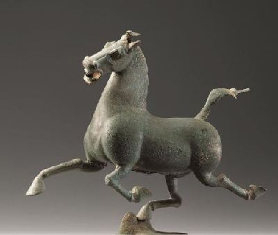 造型矯健精美,作昂首嘶鳴,疾足奔馳狀,被認為是東西方文化交往的使者和象征,為中國旅游的標(biāo)志。