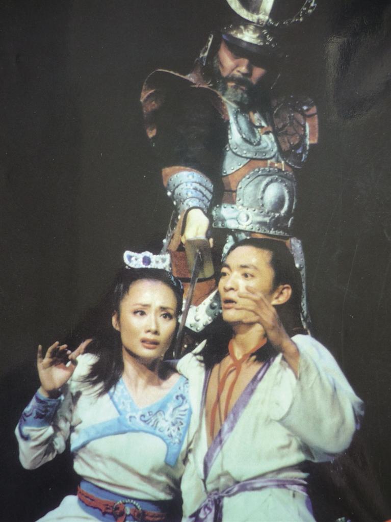 實事上,真正藝術創(chuàng)作的真諦就是這種“超越”。在藝術上沒有“超越”,沒有否定,靠復制、模仿就不是藝術創(chuàng)作的實質(zhì)精神和本質(zhì)意義?!督z路花雨》“國際交流與和平友誼”主題旨意和源自敦煌壁畫的“S型”舞姿風格的創(chuàng)立,《大夢敦煌》對月牙、莫高和大將軍人心人性強烈對比的精湛描述及諸多酣暢淋漓各具特色的組舞群舞的充分展示,均是各自舞劇的優(yōu)長特點乃至藝術個性; 二者同取材于敦煌的地域范疇, 卻又形成“雙峰并峙”的宏大精彩,實在是中國舞劇經(jīng)典的“雙子奇秀”,載入世界舞劇史冊,實至名歸。
