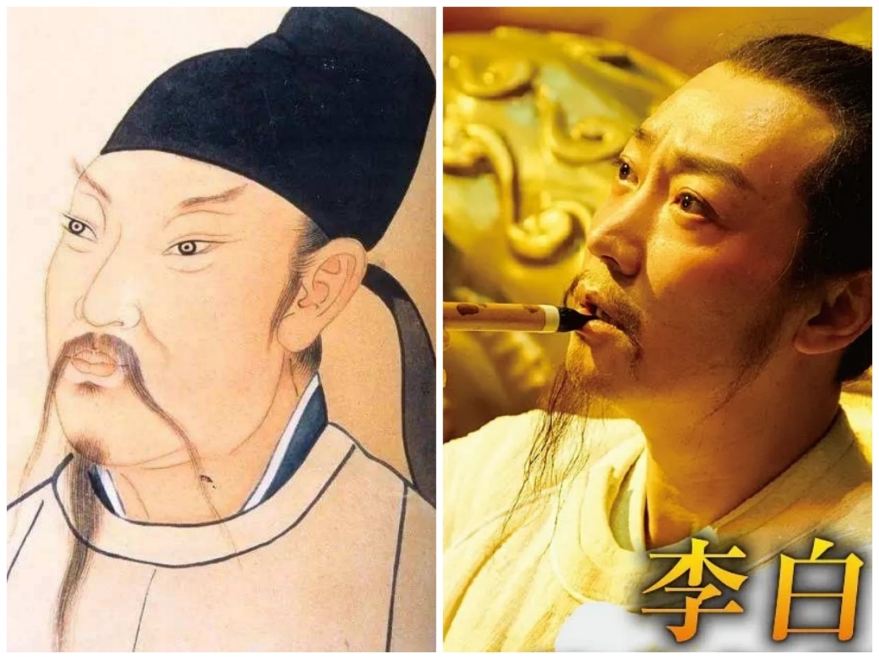 圖:李白畫像及電影《貓妖傳》中的李白形象