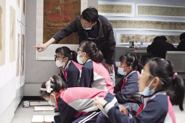 小學生近距離學習敦煌畫作 圖片由西北師范大學提供
