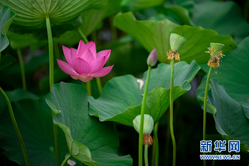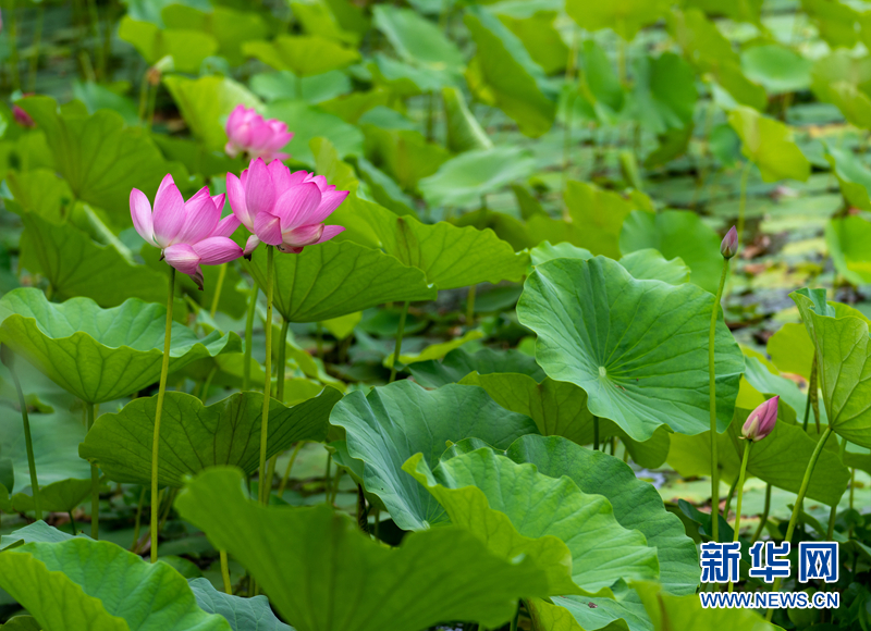 盛夏時(shí)節(jié),甘肅省隴南市成縣裴公湖里的荷花競(jìng)相綻放,在炎炎夏日中帶來(lái)一絲清涼。新華網(wǎng)發(fā)(陳爭(zhēng)強(qiáng) 攝)