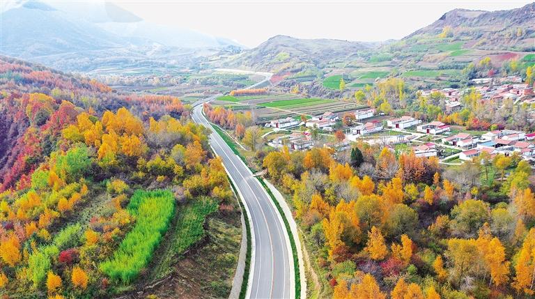 立冬過后,位于太子山下臨夏縣尹集鎮(zhèn)卡家灘村金色的樹林、綠色的麥田、整潔的村落與旅游大通道相互映襯,構(gòu)成了初冬最美的畫卷。 記者 史有東 攝