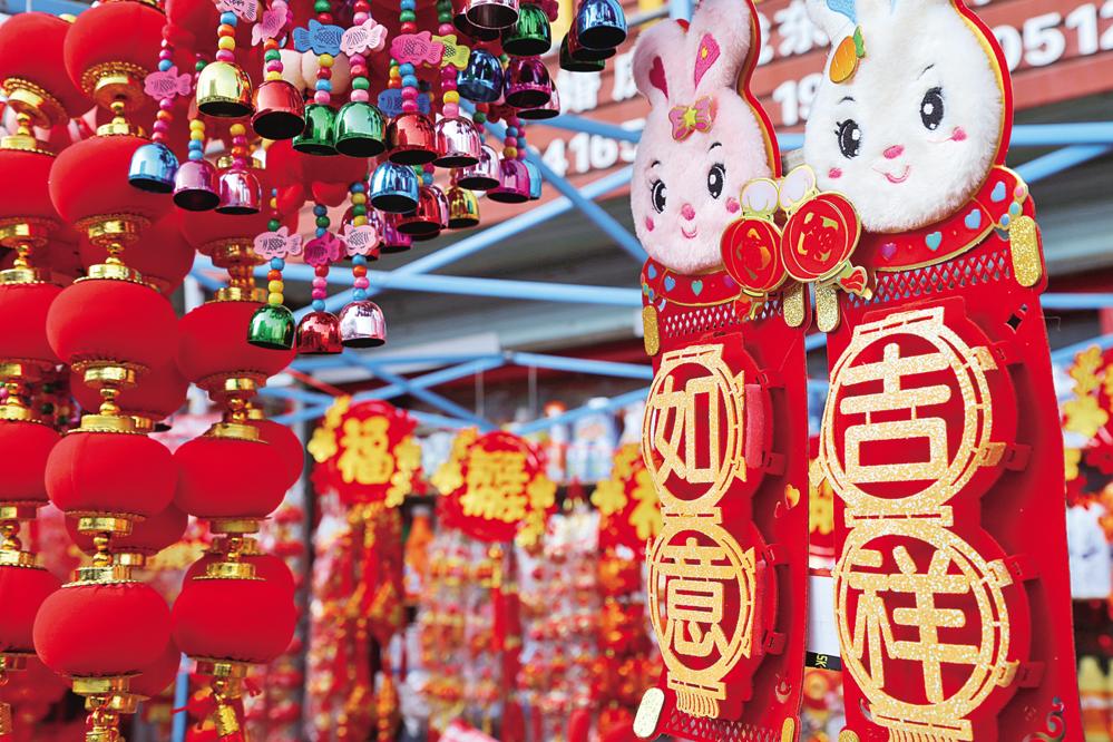 原標題:“兔元素”走俏年貨市場 濃濃年味撲面來