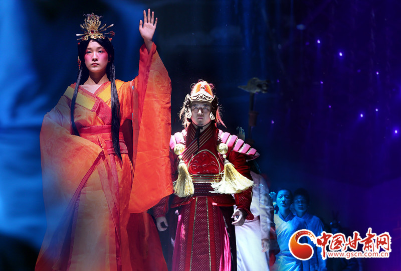第一表演區(qū)里,T臺一般的大道實際上是意象化的絲綢之路,走過絲路、穿過黃沙,最令人感動的還是當(dāng)張騫、張儀潮、米薇、王潮歌、叢明玲、張冬、王兒將……這些名字響起時,眾聲回答的那一聲‘在’,意味著今天民族文化的傳承者們同在。
