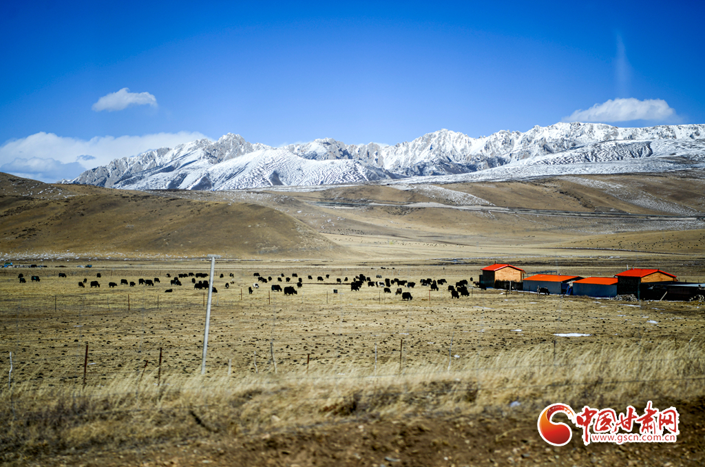 3月8日,甘肅省甘南藏族自治州碌曲縣境內再次出現(xiàn)降雪天氣,雪后初霽,大地銀裝素裹,山間云霧繚繞,牛羊成群結隊在雪原中奔跑、覓食,構成一幅和諧的生態(tài)畫卷。