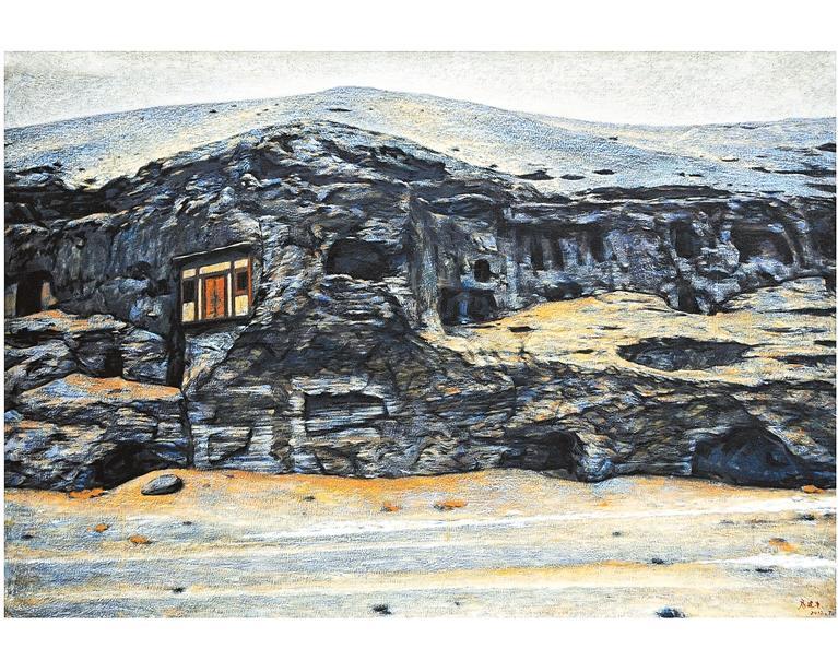 房建平多年來扎根甘肅、扎根西北,深受敦煌藝術(shù)的影響,并由此產(chǎn)生了自己獨(dú)到的見解。他以當(dāng)下的視角去審視千年之前的敦煌壁畫,思考古代工匠創(chuàng)作的技法運(yùn)用以及時(shí)代所賦予工匠們的精神面貌。他在深入研究敦煌壁畫的過程中,被那豐富的色彩所吸引,被那厚重斑駁的肌理所嘆服,被那點(diǎn)線面的旋律所震撼。他孜孜不倦、廢寢忘食地學(xué)習(xí),吸收借鑒敦煌壁畫的元素,然而并非簡單地臨摹、復(fù)制與再現(xiàn),而是于審視、思索之后源源不斷地發(fā)現(xiàn)、感受、弘揚(yáng)。更為可貴的是,他竭力探尋敦煌莫高窟的精神內(nèi)涵,包括開放包容多元文化一體的精神、莫高窟守護(hù)人的工匠精神的共同凝聚。