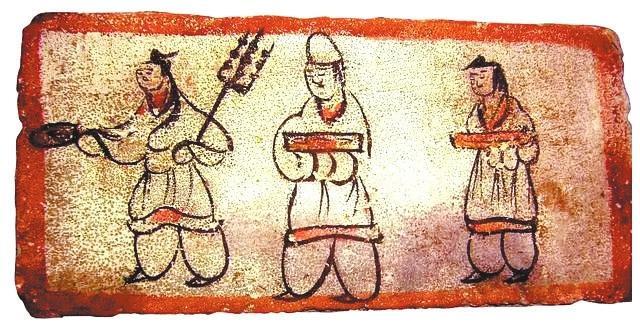 墓磚壁畫描述古人擼串場景。本版圖片由甘肅省博物館提供