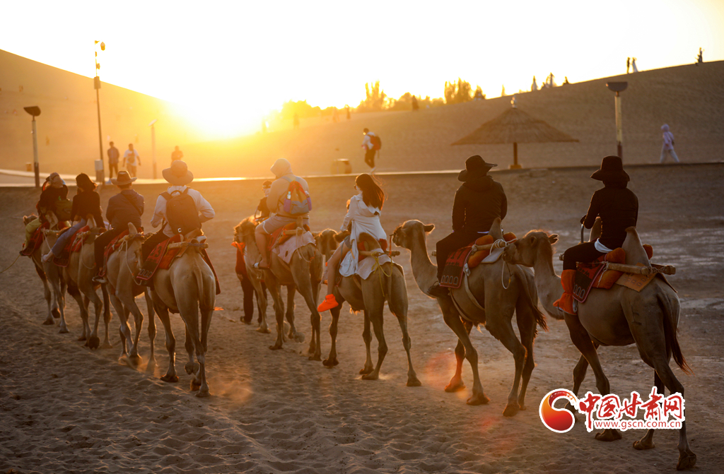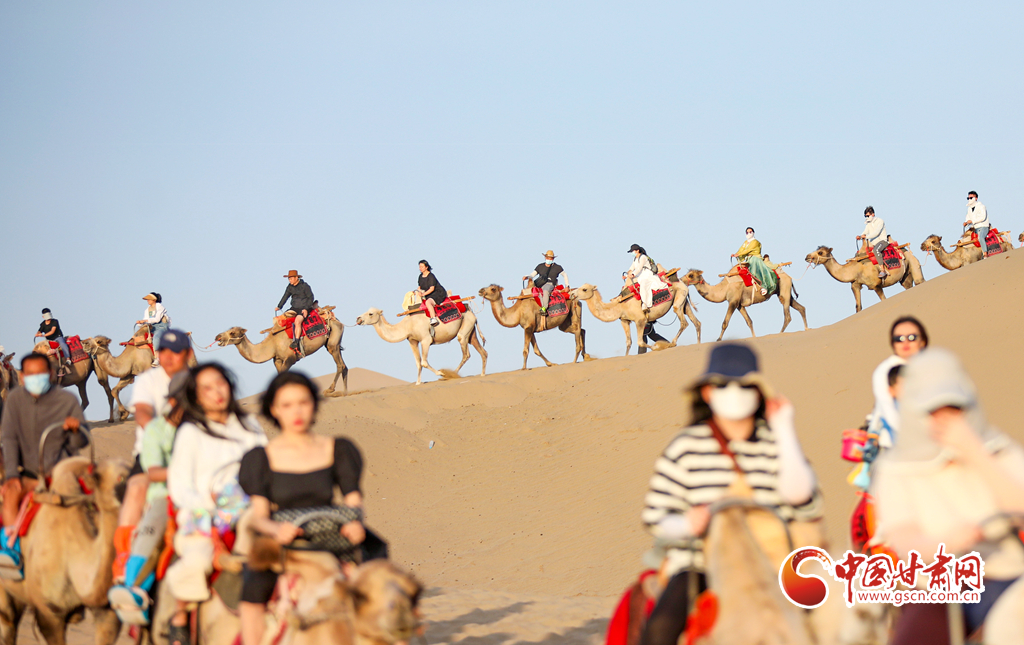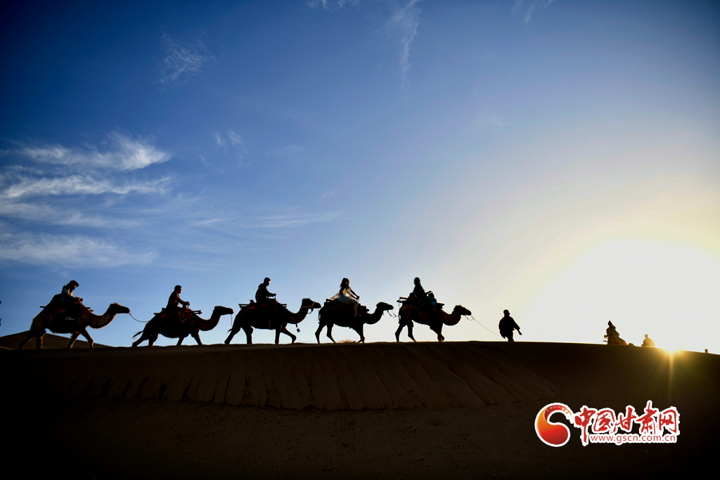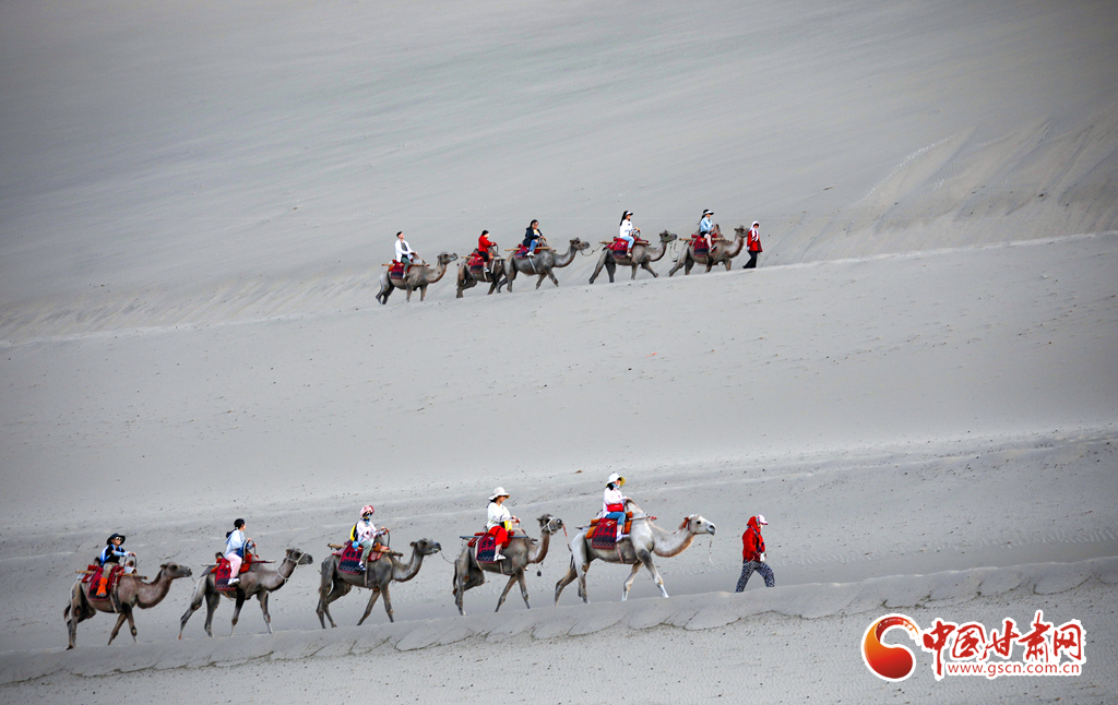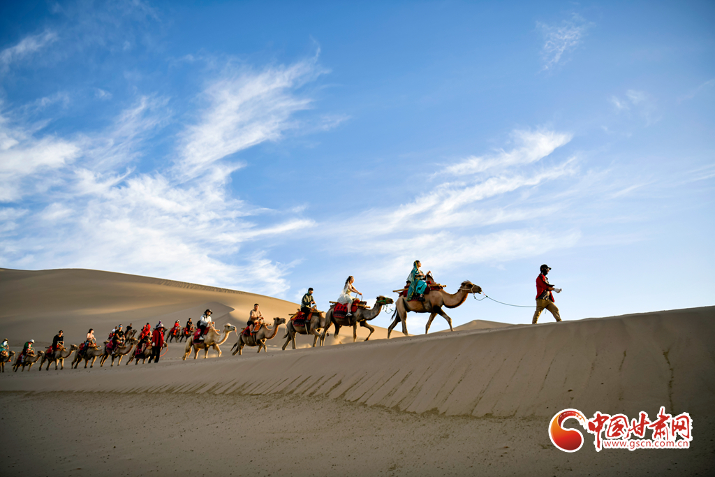 眼下正值甘肅省敦煌市旅游旺季,鳴沙山月牙泉景區(qū)持續(xù)吸引游客前來(lái)參觀游覽,這些駱駝每天更忙碌也更規(guī)律——早晨六點(diǎn)多“上班”,輪流休息,傍晚七點(diǎn)多“下班”。蜿蜒的駝隊(duì)在駝道上馱著游客在沙漠中漫步,成為鳴沙山月牙泉景區(qū)一道優(yōu)美的風(fēng)景線。