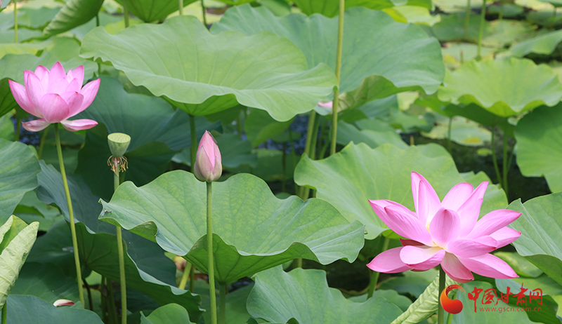 盛夏時(shí)節(jié),甘肅成縣裴公湖的荷花爭相盛開,吸引大批游客前來觀賞,拍照打卡。