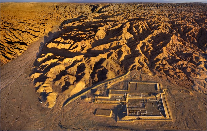 空中俯拍的懸泉置遺址(資料照片)。甘肅省敦煌市懸泉置遺址保護所供圖