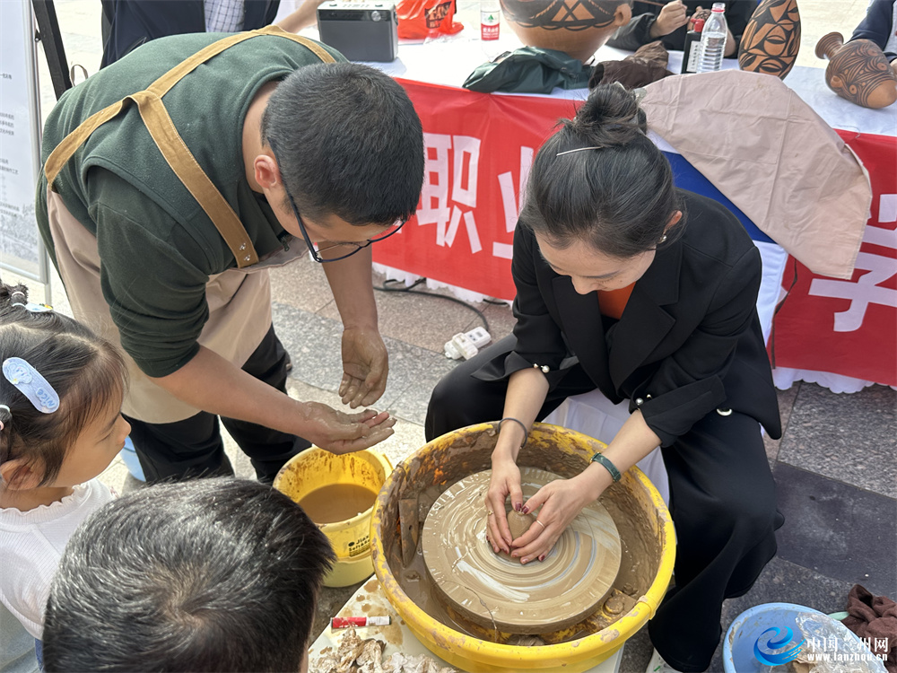 當日的活動中,蘭州職業(yè)技術學院非物質文化遺產(chǎn)學院的師生現(xiàn)場展示蘭州刻葫蘆、慶陽剪紙、木版年畫、甘南藏族唐卡、泥板畫、甘肅彩陶、掐絲琺瑯畫等非遺技藝,吸引了很多市民見此情景駐足觀看。其中甘肅彩陶展示尤為引人注目,不少市民上手體驗,在學院同學的幫助下體驗非遺文化。市民張女士說:“這是我第一次體驗制作甘肅彩陶,讓人印象非常深刻,了解了古人是如何制作彩陶的,也讓我'沉浸式'感受到非遺文化的魅力。”