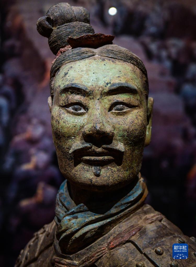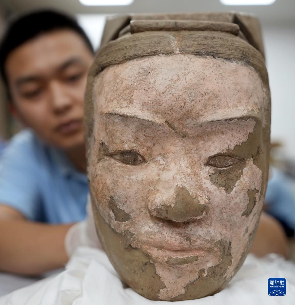 這是秦俑臉部彩繪還原修復(fù)后的樣貌(8月23日攝)。