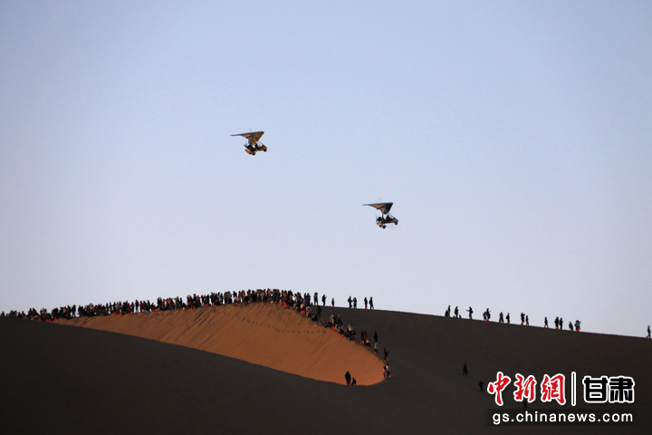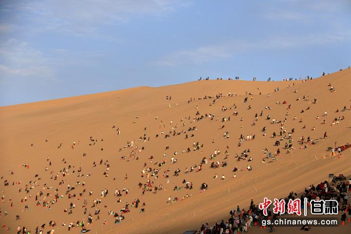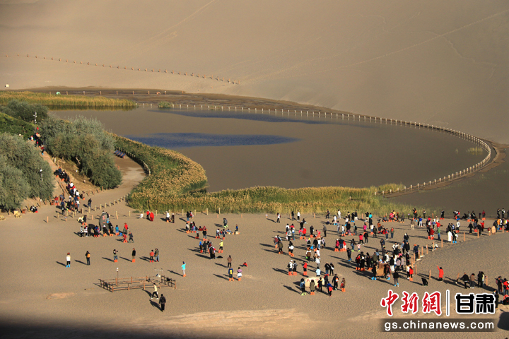 今年以來,甘肅省敦煌市旅游市場持續(xù)火熱。當(dāng)?shù)刂包c(diǎn)鳴沙山月牙泉在今年中秋國慶假期期間,累計(jì)接待游客首次突破300萬人次,比2019年同期增長35.5%,創(chuàng)歷史新高。(張曉亮 習(xí)剛)