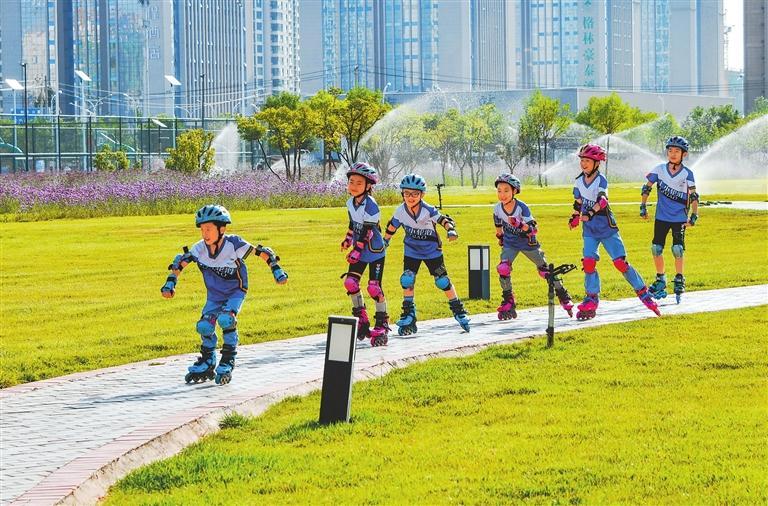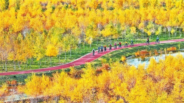 張掖奧林匹克森林公園成為市民健身休閑的好去處。新甘肅·甘肅日報通訊員 王將