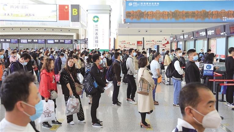 旅客排隊辦理值機(jī) □照片由省民航機(jī)場集團(tuán)提供