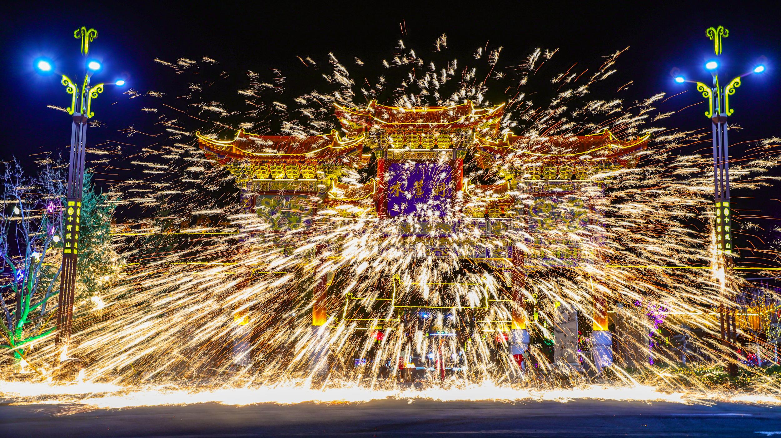 璀璨奪目的鐵花在空中綻放,場(chǎng)面十分壯觀。民眾在火樹(shù)銀花、星光璀璨之間感受著濃濃的中國(guó)傳統(tǒng)民俗文化。