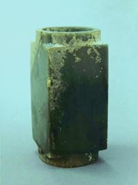 玉琮(編號總0128:2)高4.6~5.2厘米,外方邊長5.5~5.7厘米,內(nèi)徑大端5.4厘米,小端4.2厘米,形制一端較規(guī)整,另一端四角上部不規(guī)整。