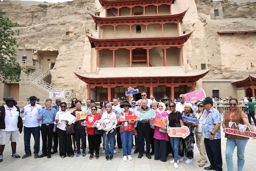 6月6日至8日,來自22個國家的駐華使節(jié)和高級別外交官走進(jìn)敦煌,尋訪莫高窟,游覽鳴沙山月牙泉景區(qū),參加河西走廊五市的文旅專場推介會,并在對話會上共同探討“絲路精神推動文明交流互鑒”。