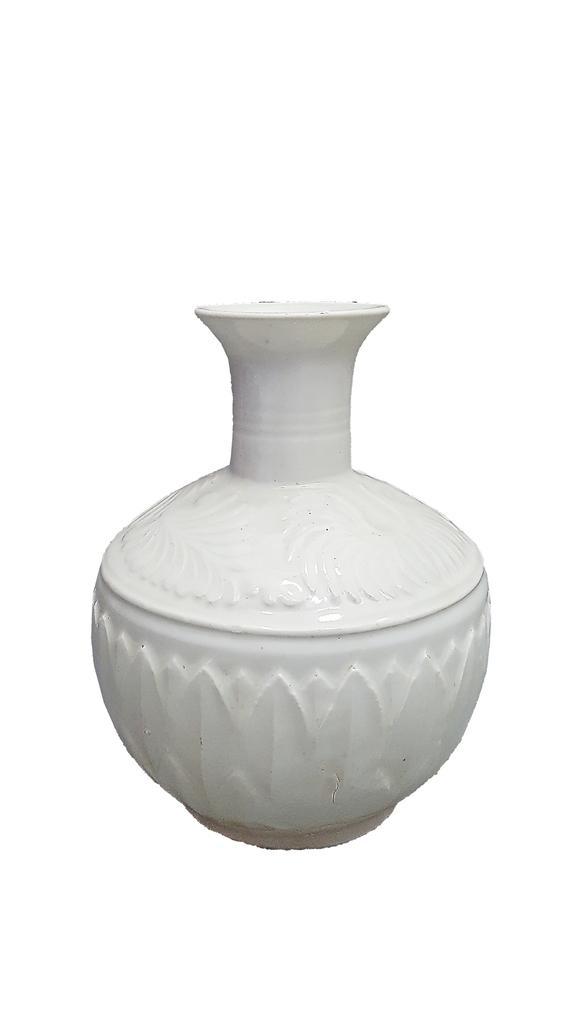 北宋·定窯白釉蓮紋長頸瓶