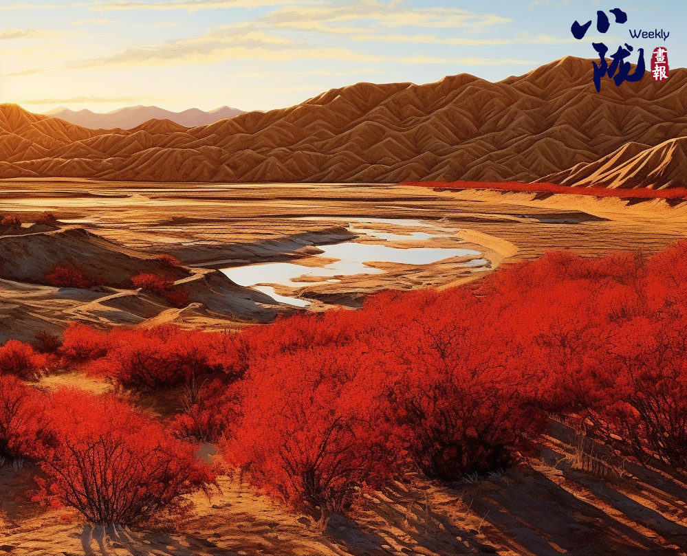 這里氣候干燥,降水稀少,高大的植物難以生存。只有紅柳深扎根須,迎著風(fēng)沙,頑強(qiáng)生長(zhǎng)。遠(yuǎn)遠(yuǎn)望去,密集的紅柳連成一片,把戈壁染成了紅色。