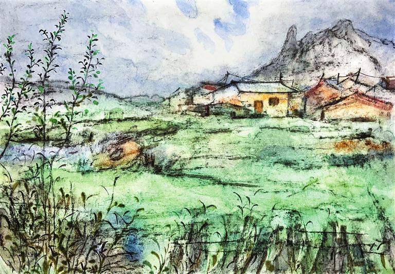 平常在畫室里畫畫時,喜歡用淡淡的墨色體會與宣紙碰撞所散發(fā)出的獨(dú)特墨韻。但是描摹西部,需要更加深厚、絢爛、豐富的色彩,才能表達(dá)我們的感受,寄予我們對這片土地的深情。離開故土,踏向遠(yuǎn)方,那份對家鄉(xiāng)的無盡思念和深深眷戀,是每一位游子心中難以言喻的情感,如同無形的紐帶,將我們與故鄉(xiāng)緊緊相連。這種情感,如同西北高原上那連綿不絕的山脈,既遙遠(yuǎn)又清晰,既冷峻又溫暖。