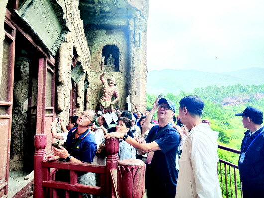 活動當天,來自臺灣文博領(lǐng)域的專家學(xué)者一行,懷著對古老文化的敬仰與憧憬,在麥積山石窟感受石窟藝術(shù)的獨特魅力、在天水工業(yè)博物館探尋工業(yè)發(fā)展的歷史脈絡(luò)、在伏羲廟體悟中華始祖文化的博大精深、在天水市博物館領(lǐng)略豐富的歷史文物承載的歲月記憶、在天水古城品味古色古香的韻味與風(fēng)情……一系列豐富多彩的文化交流活動,讓他們近距離感受到了古城天水的風(fēng)景名勝、文化遺產(chǎn)保護傳承及山川風(fēng)物。