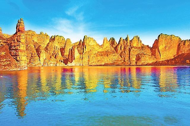 炳靈石林南鄰黃河,北倚大山,園內(nèi)千峰壁立,萬壑縱橫,數(shù)百條支溝曲折蜿蜒,它們與形態(tài)各異的石峰共同組成了奇異的石林世界,是一座氣勢磅礴的天然雕塑博物館。炳靈石林掩映著劉家峽水庫浩渺碧波,呼應著炳靈寺古老石窟,兼盡大西北的雄渾和江南的柔美,透露著大自然的變化莫測,猶若仙境,令人神往。一座座,一峰峰,以物造形,隨意賦名,有的像玲瓏的寶塔,有的若群駝行進,有的若巨龍騰空,有的如奔騰的駿馬……形象生動,活靈活現(xiàn)。乘坐游船穿越炳靈峽,沿途可欣賞到兩岸峭壁聳立,石林倒映水中,形成“水上石林”的獨特景觀。