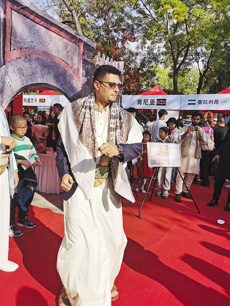 當(dāng)日下午,記者來(lái)到現(xiàn)場(chǎng)看到,中國(guó)、馬達(dá)加斯加、蘇丹、俄羅斯、德國(guó)、也門、斯里蘭卡、印度……各國(guó)展臺(tái)前人們摩肩擦踵,空氣中彌漫著美食的味道與火熱的激情。身著各國(guó)傳統(tǒng)服飾的人群中,滿目都是俊男靚女,讓人恍若置身國(guó)際大都會(huì)。