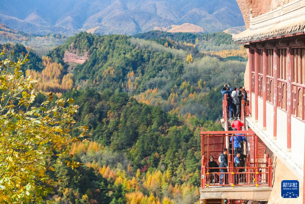11月2日,游客在麥積山石窟參觀游覽。新華社記者 郎兵兵 攝