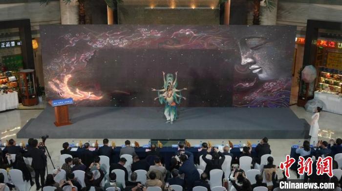 11月20日,敦煌“會展季”北京推介會舉行。圖為推介會現(xiàn)場的文藝表演。主辦方供圖。