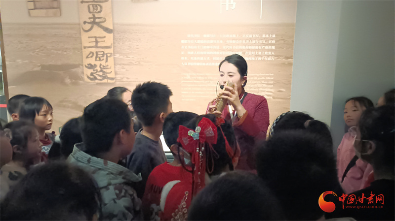 活動中,講解員帶著同學們走進甘肅簡牘博物館,將藏在簡牘中的漢代春節(jié)講給同學們聽。