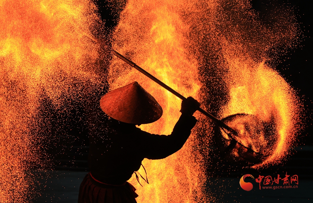 春節(jié)期間,在臨夏永靖劉家峽太極廣場(chǎng)上進(jìn)行的打鐵花和火壺表演吸引了不少觀眾,營(yíng)造了濃濃的節(jié)日氛圍。