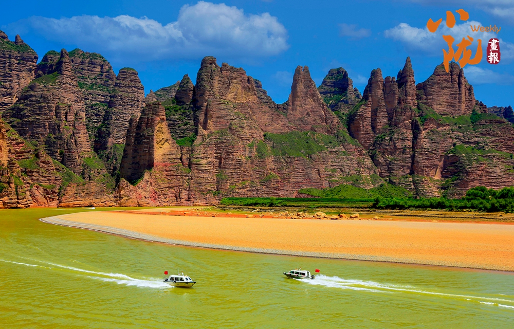 黃河三灣的河水波光粼粼,清澈透明,仿佛一塊晶瑩的藍寶石鑲嵌在大地母親的懷抱中。在藍天白云的映襯下,河水微波蕩漾,水天相連,水鳥嬉戲,顯得分外恬靜美麗,這種美景四季皆然。