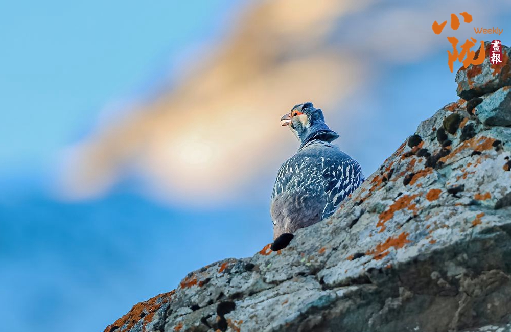 國(guó)家二級(jí)保護(hù)動(dòng)物藏雪雞,又名“淡腹雪雞”或“貝母雞”。雌雄羽毛相似。嘴為黃色,腳為紅色。前額有一桔色臘膜,眼周裸皮為黃色。背部暗棕色,密布不規(guī)則的細(xì)斑。翼羽暗褐色,具有白色羽緣,初級(jí)飛羽為灰褐色,尾羽為深棕色,密布黑褐色點(diǎn)斑。胸、腹均有淡色與黑色相間的黑紋。