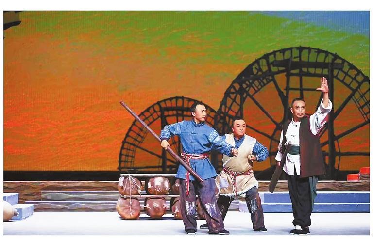 地域文化符號的創(chuàng)造性轉(zhuǎn)化,是該劇藝術(shù)創(chuàng)新的另一亮點。劇中,蘭州太平鼓、黃河水車等元素被巧妙融入劇情:太平鼓在“祭河神”的一場戲中既是祭祀道具,又成為鼓舞士氣的戰(zhàn)鼓;黃河水車則通過光影變幻,象征著時代的流轉(zhuǎn)與歷史的延續(xù)。這種將地域文化符號轉(zhuǎn)化為戲劇語言的嘗試,使作品在保持隴劇本體特征的同時,獲得了更廣闊的審美空間。