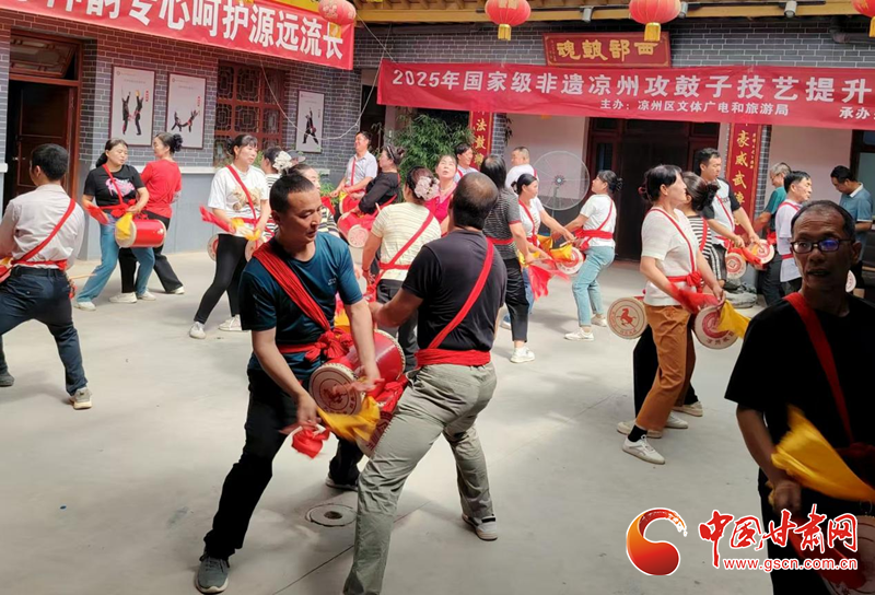 中國甘肅網(wǎng)7月19日訊(西北角·中國甘肅網(wǎng)記者 張振國 文/圖)為扎實推進國家級非物質文化遺產(chǎn)項目傳承與保護,系統(tǒng)提升涼州攻鼓子團隊專業(yè)水平,發(fā)展壯大攻鼓子傳承人隊伍。7月16日,由涼州區(qū)文體廣電和旅游局主辦、涼州區(qū)文化館承辦的2025年涼州攻鼓子傳承人技藝提升培訓班分別在“涼州攻鼓子傳習所”和“四壩鎮(zhèn)非遺民俗文化館”開班。