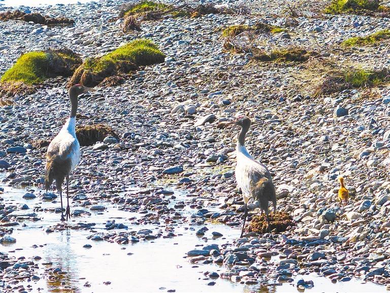 近日,甘肅祁連山國家級自然保護(hù)區(qū)管護(hù)中心隆暢河自然保護(hù)站工作人員捕捉到了國家一級保護(hù)動物黑頸鶴“一家三口”的珍貴影像,為祁連山生物多樣性保護(hù)再添新彩。