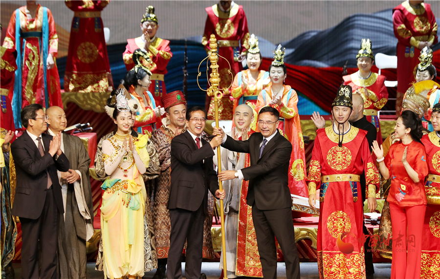 在夢(mèng)回大唐的繁華盛境中,《玄奘西行》落下帷幕。玄奘大師歷經(jīng)艱辛,宏圖之志不改,終于修得正果,回到大唐,盛世的自信與包容一覽無(wú)余。走進(jìn)新時(shí)代,“一帶一路”倡議共繪朋友圈,敦煌文博會(huì)帶來(lái)文化交流。