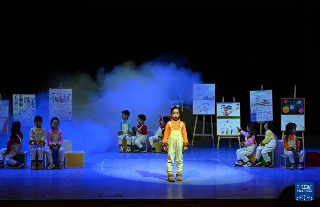 當日,北京兒童藝術(shù)劇院語言與表達班在北京舉行匯報演出。孩子們通過戲劇課堂的啟發(fā),圍繞“幸福是什么”這一主題,以原創(chuàng)詩歌的形式開展表演。