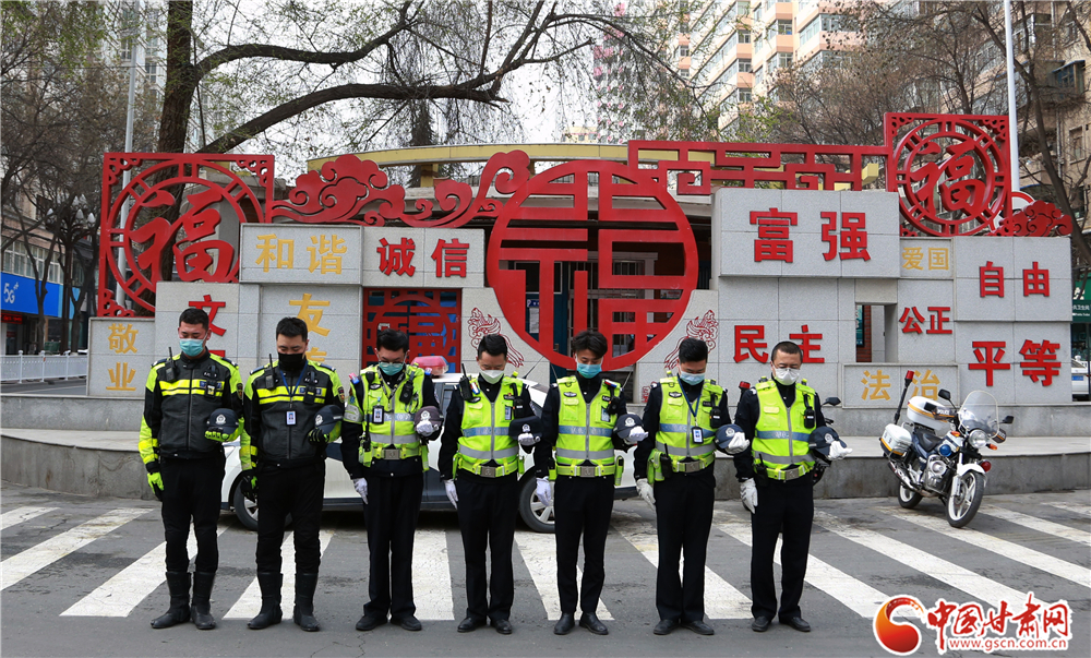 警報長鳴 駐足垂首 蘭州交警深切哀悼新冠肺炎疫情犧牲烈士和逝世同胞